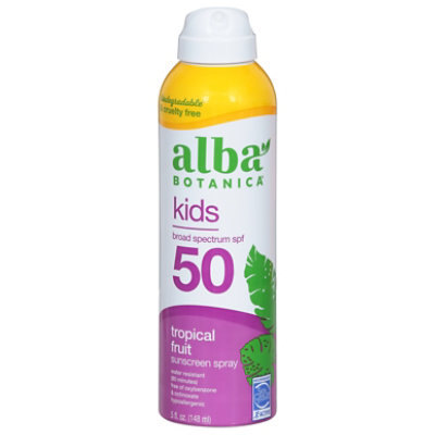 BurnOut Face Body Sunscreen Lotion SPF 30. Start your review of Alba Botanica Hawaiian Continuous Clear Spray Sunscreen SPF 50 - Coconut. Bottle of Alba Botanica Cool Sport Refreshing Clear Spray SPF 50 Sunscreen Lightweight air-powered mist protects against the suns harmful rays Provides broad spectrum protection is water resistant for up to 80 minutes and is coral reef friendly Recommended by the Skin Cancer Foundation.