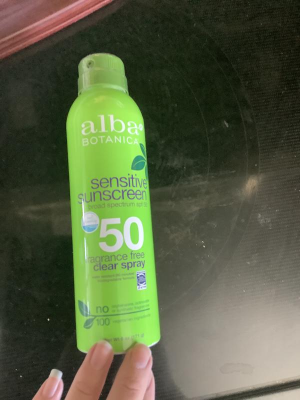 I have tried every spray on sunscreen brand out there however my children all have very sensitive skin and would develop a minor rash some worse than others from all other brands of spray-on and lotion sunscreen even the ones for sensitive skin. Alba Botanica Hawaiian Sunscreen Clear Spray SPF 50 Nourishing Coconut Clear 6 Fl Oz Packaging May Vary 47 out of 5 stars6720 948 Alba Botanica Kids Sunscreen Spray SPF 50 Tropical Fruit 6 Oz. The product with the most reviews is Alba Botanica Acnedote which has received an average of 46 out of 5 stars after more than 400 customer reviews.