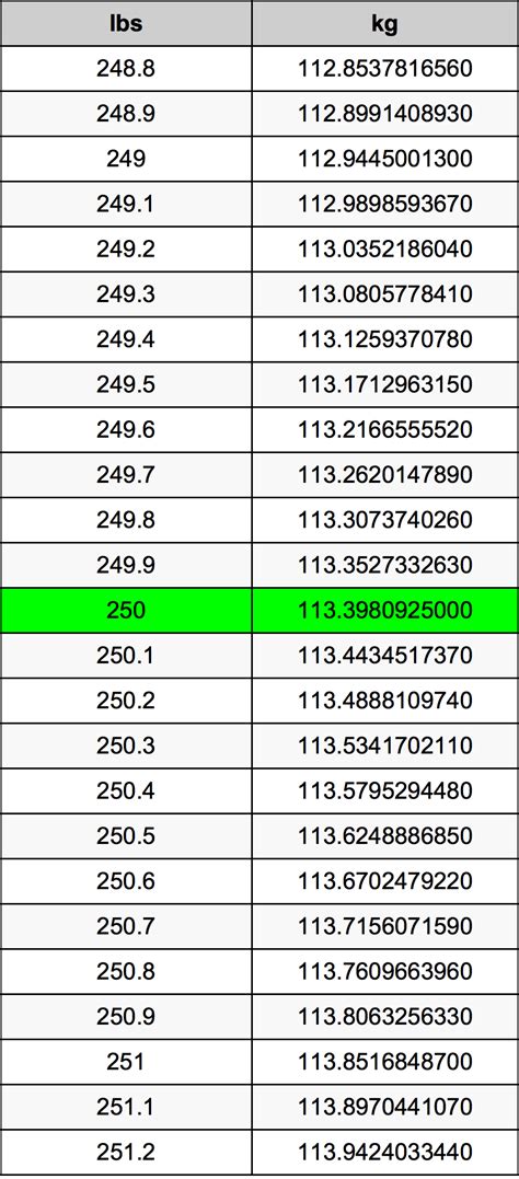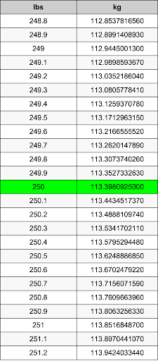How Much Is 250 Pounds In Kg